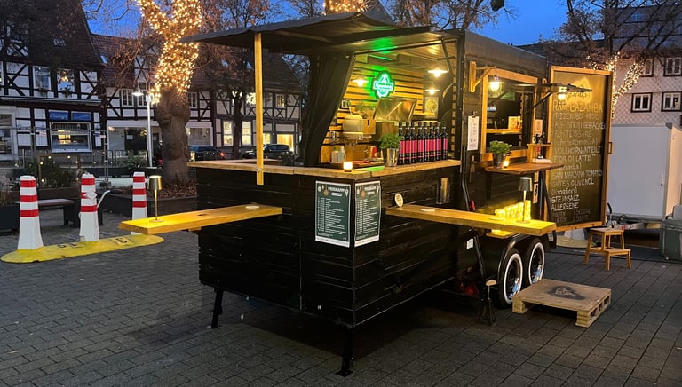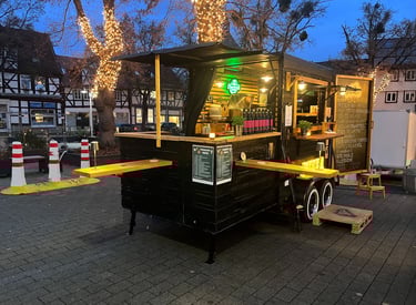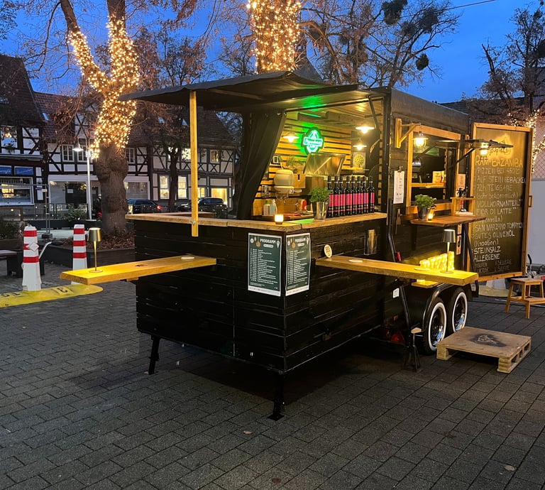 Die Horsebox braucht nur 230V – gebacken wird im Gassteinofen bei 450°C - perfekt für Ihr nächstes Event. Platzbedarf 6mx2,5m