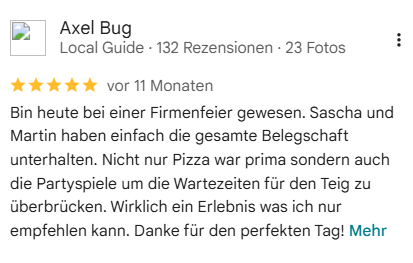 Pizza satt, ich plane immer mehr Pizzen als Personen ein :-)