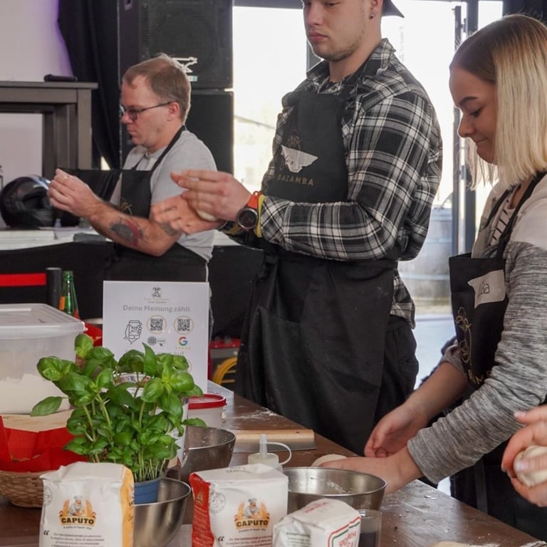 Gemeinsam Pizzateig herstellen, kneten und belegen – ideal als Pizza-Kurs oder für Teambuilding und Spaß.